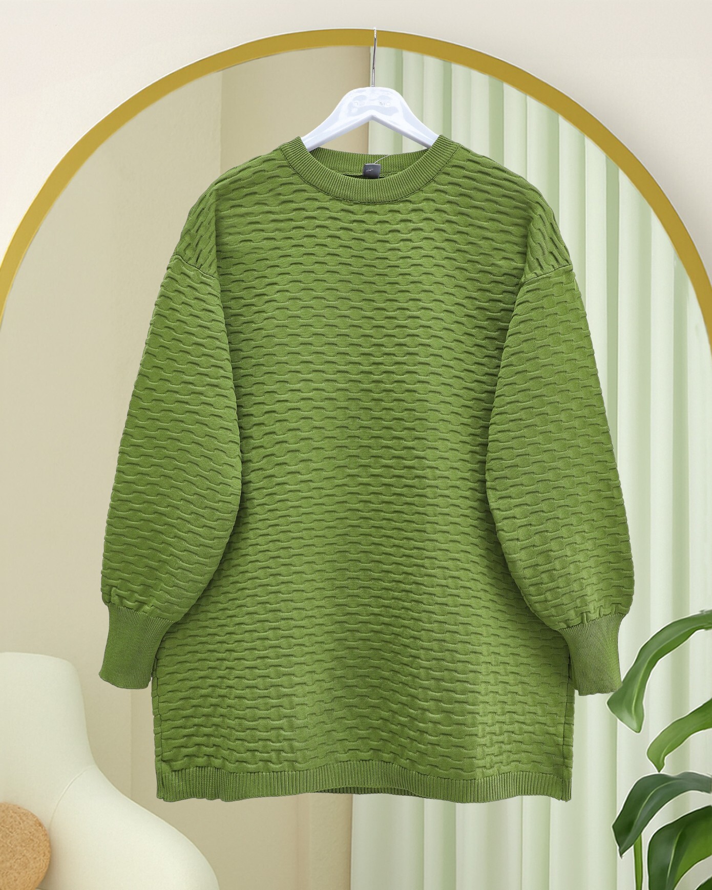 Yuvarlak Yaka Kabartma Desen Kolu Lastikli Triko Tunik -A.Yeşil-A.Yeşil