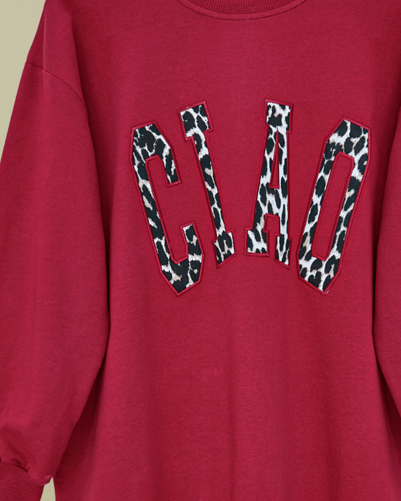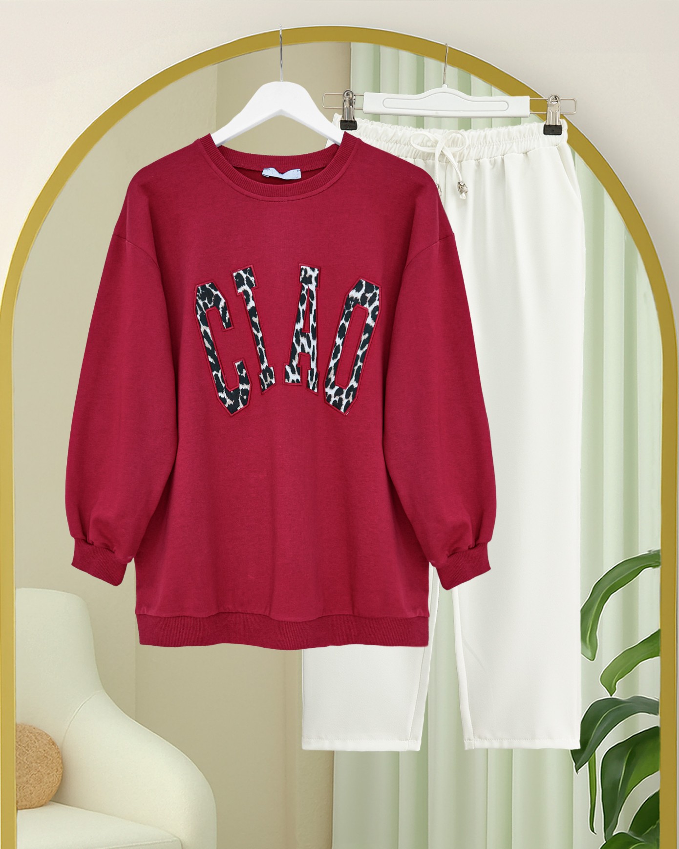 Yuvarlak Yaka Önü Nakışlı Sweat -Bordo-Bordo