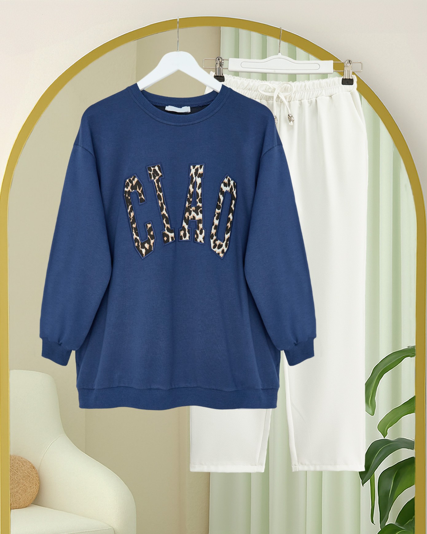 Yuvarlak Yaka Önü Nakışlı Sweat -Laci-Lacivert