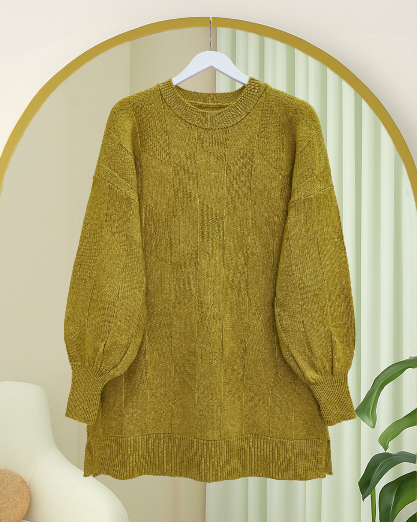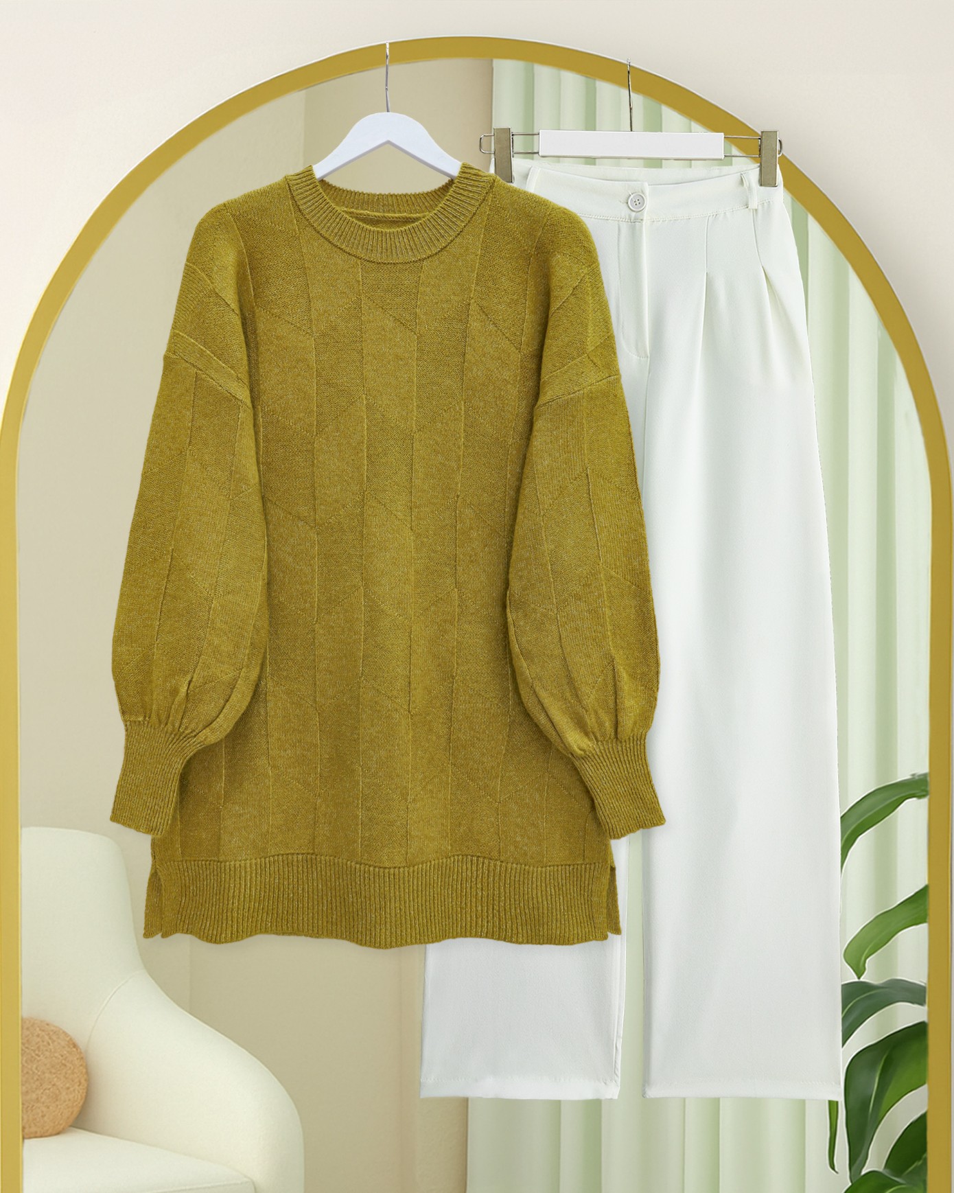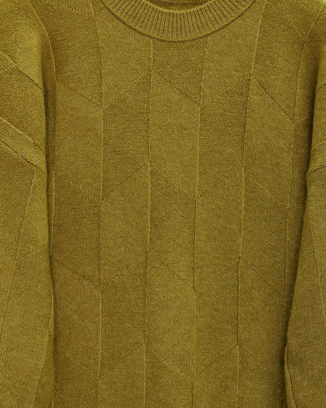 Yuvarlak Yaka Salaş Desenli Triko Kazak -Yağ Yeşili-Yağ Yeşili