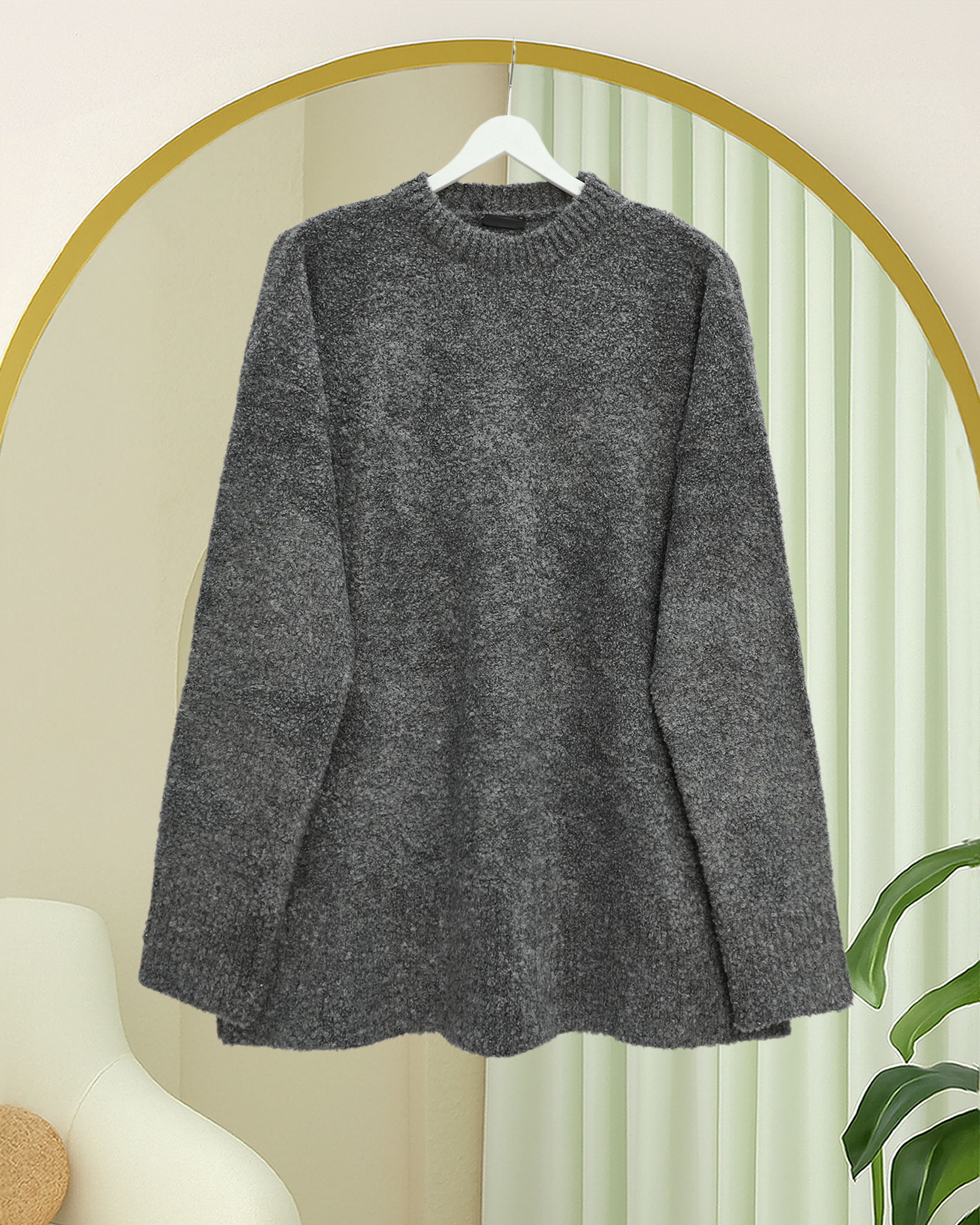 Yuvarlak Yaka Salaş Yumoş Triko Kazak -Füme-Füme