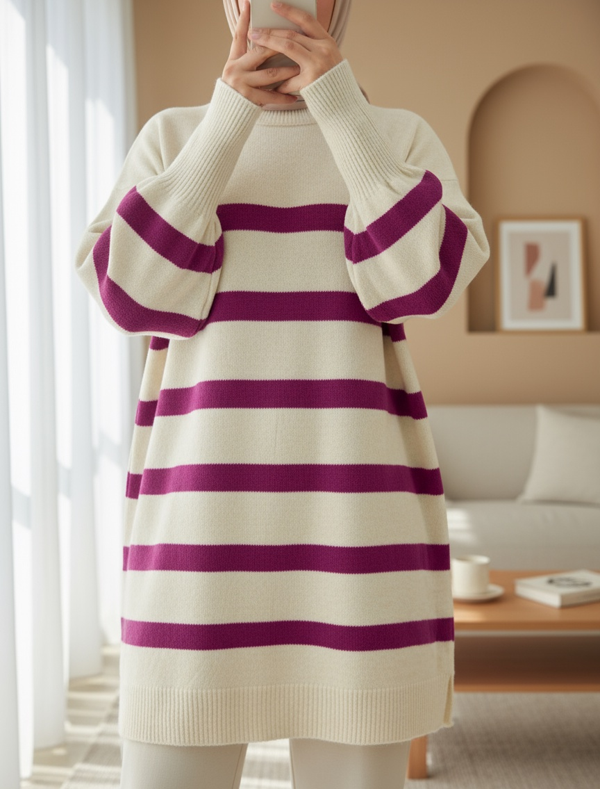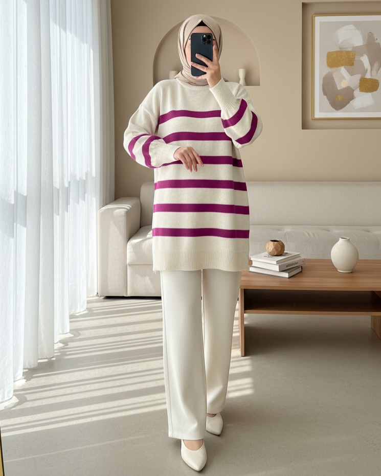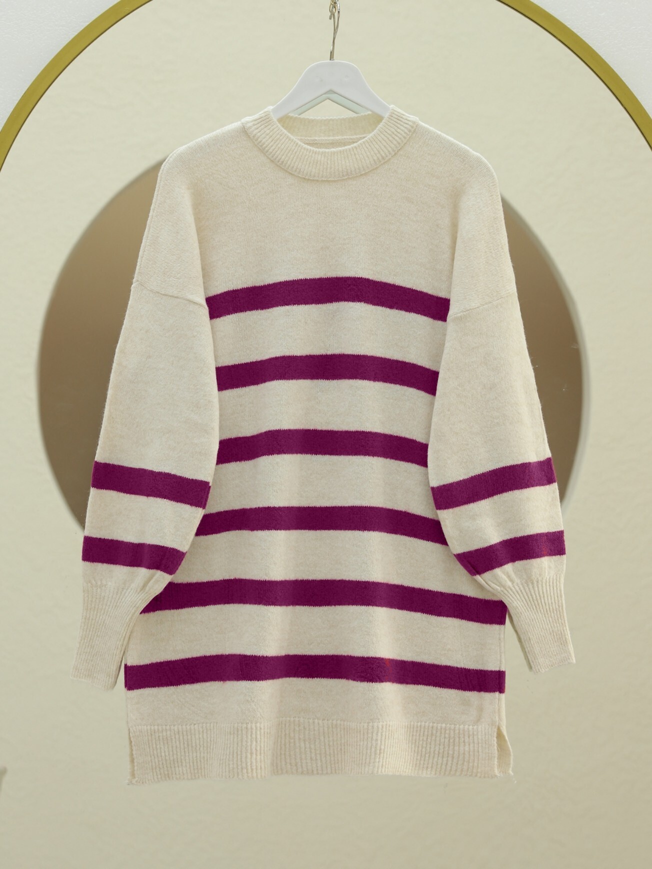 Yuvarlak Yaka Yırtmaçlı Triko Tunik -Fuşya-Fuşya