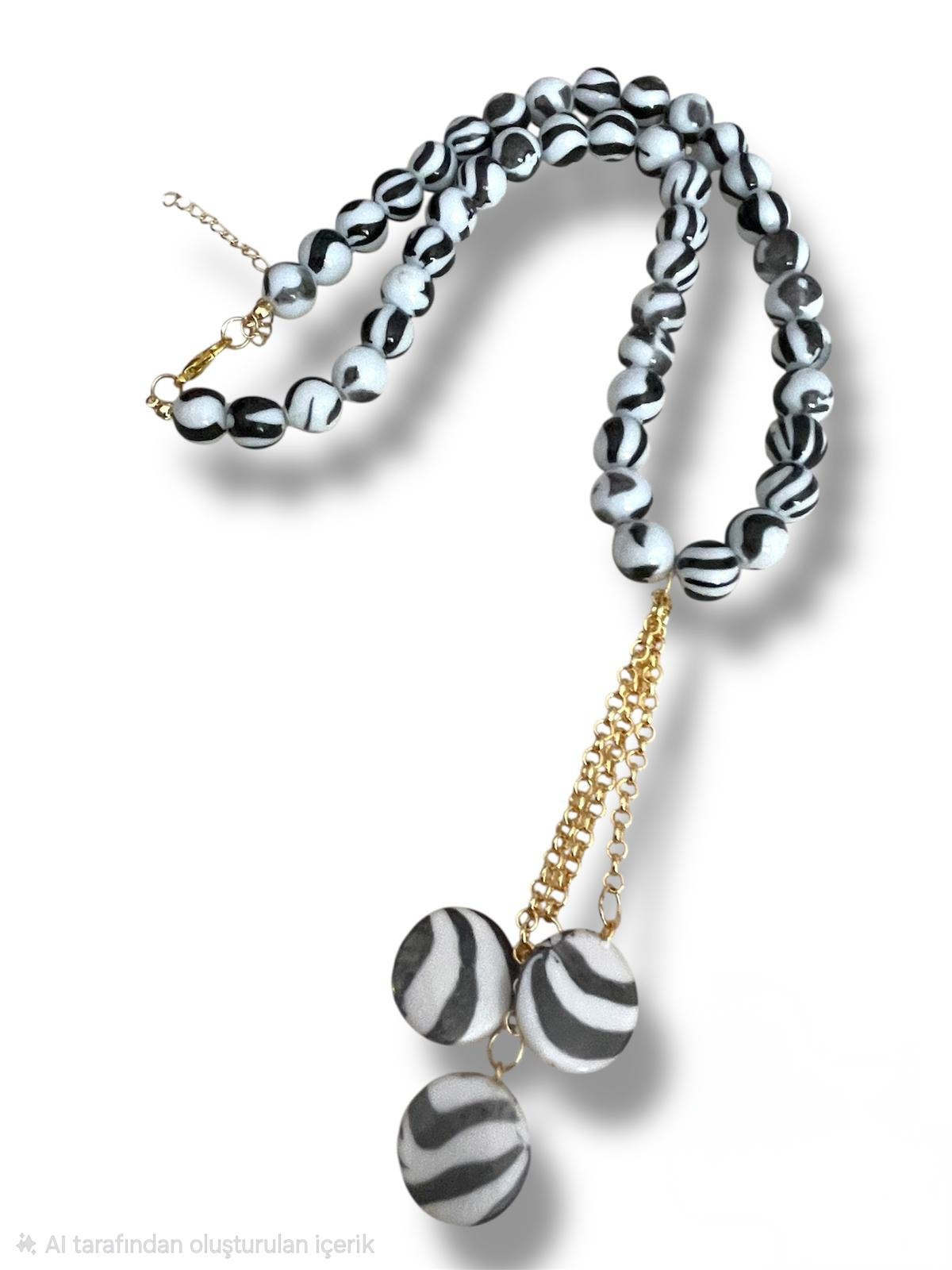Zebra Desen Yuvarlak Taşlı Kolye -Genel-Çoklu Renk